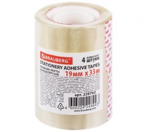 Скотч канцелярский 19мм 33м прозрачный Brauberg
